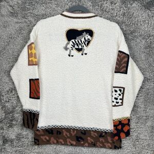 Vintage Berek Knit Cardigan Sweater Medium Jungle Animals All Over Print *READ*