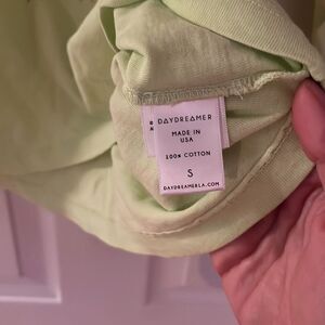 100% cotton Made in USA Machine wash Crewneck Faded front & back screen print graphic Oversized fit Jersey fabric