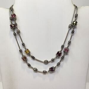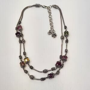 Brighton Glass Mountain Double Chain Layered Necklace Multi Color Crystal Boho