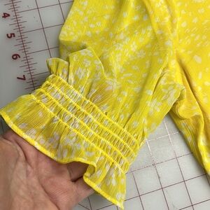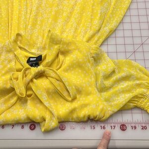 DKNY Yellow/White Floral Tie-Neck Smock Waist/Cuff Career Cottage Midi Dress 4