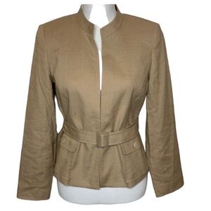 NWOT TALBOTS Tan Linen Blend Belted Blazer Jacket Petites Size 10P