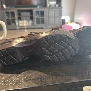 Beautiful pair of BOC brown buckled sandals open toe cute stacked heel all leather uppers, and chunky hardware