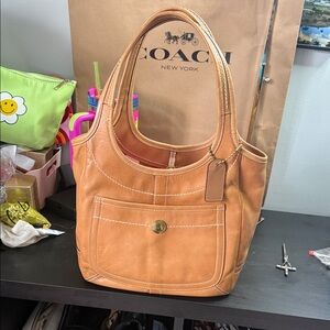 Stylish Coach wristlet in vibrant purple. Features chain design and secure zipper closure. Perfect for essentials. EUC, no callouts!
