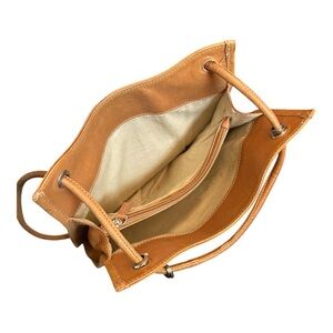 Vintage J.Crew Tan Leather Tote Bag with Gold Hardware