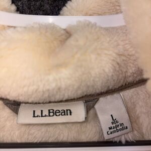 LL Bean Jacket Womens L Cream Hi Pile Fleece Pullover Pockets Fuzzy Teddy Snap