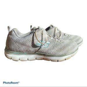 SKECHERS | Grey Knit Air Cooled Comfy Athletic Running Y2k Retro Sneakers 8.