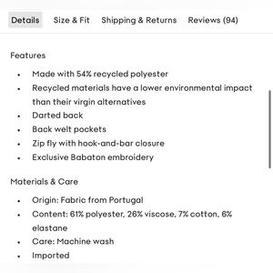 Content: 61% polyester, 26% viscose, 7% cotton, 6% elastane
