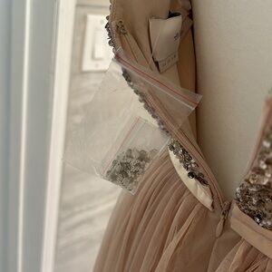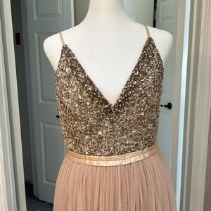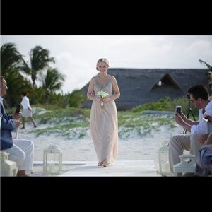 Selling the most gorgeous beaded dress in a rose color. Worn once for a perfect Mexico wedding. Was not altered, so is a true size 4. No smoking or pets. Will consider all offers.