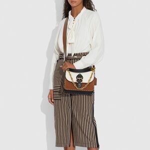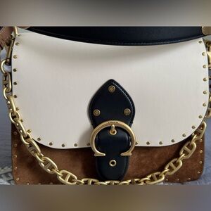 Comes with chain strap, removable top handle, adjustable crossbody strap and dust bag