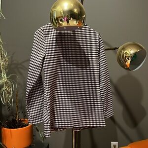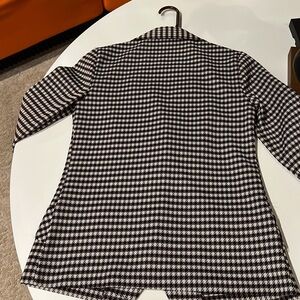 Love this adorable brown and white houndstooth plaid/check blazer. It’s super lightweight and comfortable. Features a one button closure and faux pocket flaps. Flat lay measurements: shoulder to hem 24”; pit to pit 17”; sleeve length 20.5”. I believe it’s a size 10, but these vintage sizes tend to run smaller than modern sizes. Smoke/pet free home.