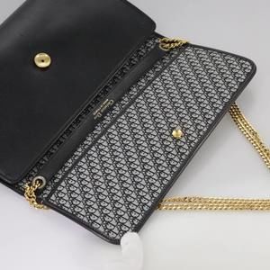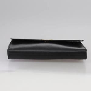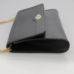 Christian Dior Chain Shoulder Bag Leather Black Gold Auth 109077