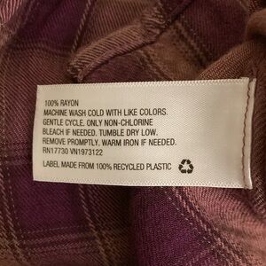 Vintage Y2K mauve-y/maroon-ish/purple-y 100% rayon plaid button-down shirt—great for layering with a chunky sweater and leggings. Excellent condition/gently worn (several times)—no flaws noted. Colors may vary slightly depending on screen, but looks like the colors in the pics to me!