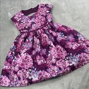 Charming kids dress with a vibrant purple floral design. Perfect for special occasions.