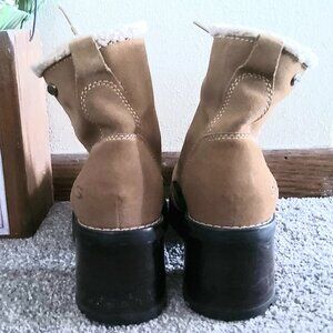 Skechers y2k 90's boots genuine suede leather tan color no stains shepa around top. Size 8. 2"heel 1" platform.