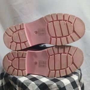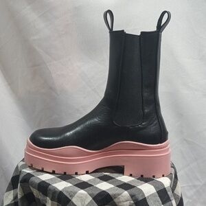 Stylish black boots with a bold pink sole. Perfect for adding a pop of color to your outfit. size 7.5