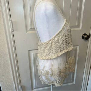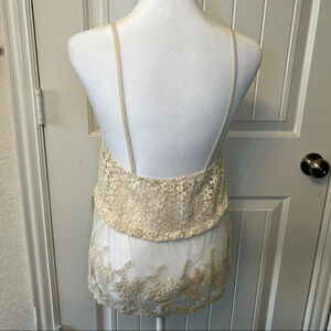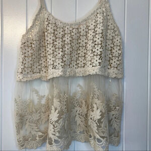 Just Me crochet and lace tank/cami top, sz Small Can be use as a bikini cover up. Semi-sheer. See through. Great for layering. Babydoll look. 100% cotton Pit to pit 15” Length 23” Festivsl, western, floral