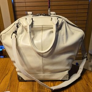 NWOT Elegant cream knit hat and scarf set. Features gold studded MK logo. Perfect for winter fashion.