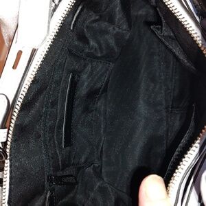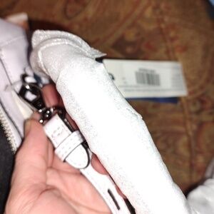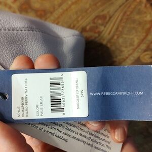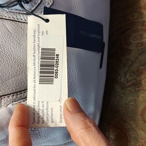 NWT Rebecca Minkoff Micro Perry Pebbled Leather Satchel in Pale Lilac ( a very light purple). Original Retail $295.00. Comes with dustbag and removable and adjustable crossbody strap. Original Retail tags attached. Taken out of plastic packaging for photos. Gunmetal hardware. Super soft leather! Double rolled shoulder straps and crossbody strap still in factory wrapping. Protective metal feet on bottom. No rips, tears or stains to exterior leather or black interior fabric lining. Dustbag is new but has transfer marks as pictured. Slight odor from being stored in plastic packaging which should go away after airing out. Will address with Zero Odor Pro before shipping if needed. Purse measures approximately 12 inches across by 6.5 inches high and 4 inches wide. Please review all photos and listing description carefully and ask questions before purchasing. Comes from a smoke free and cat friendly home. Accepting reasonable offers!