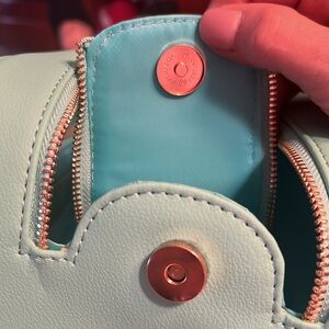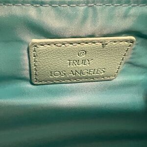 • Blue/ Teal Double Zippered Satin Lined Cosmetic Travel Bag. Snap and Zipper Closures