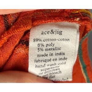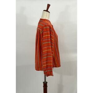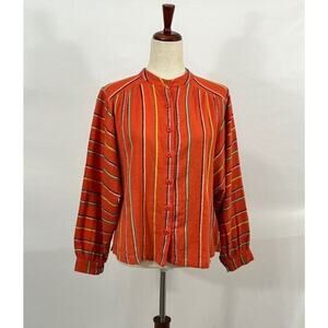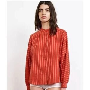 Women's top by ACE & JIG. Size XS. Barrett blouse in Rhumba. Orange/red stripe, button front, wide sleeve that tapers at wrist. 89% cotton, 6% poly, 5% metallic. Good condition, no stains, holes or pilling