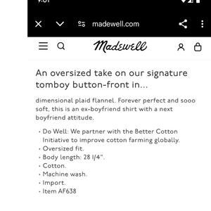 Madewell Flannel Oversized Ex-Boyfriend Flannel M