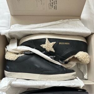 Golden Goose Superstar Sneakers. Black Leather Shearling Star. Size 38. New