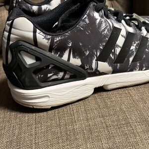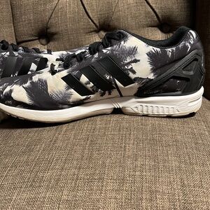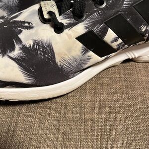 Step out in style with these Adidas men's sneakers. Featuring a sleek black and white palm tree design, these shoes offer both comfort and fashion. Perfect for any casual outing. There are some marks (see pics) but they blend in with the pattern so aren't real noticeable. No holes