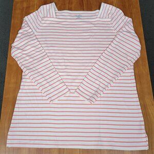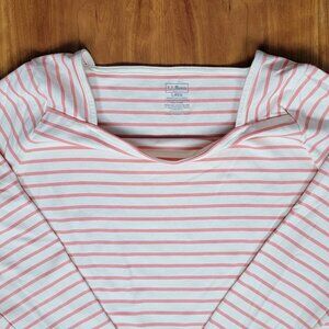 L.L. Bean Supima Cotton Peach White Striped Long Sleeve Square Neck Top - L