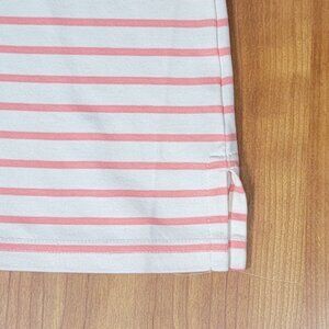 L.L. Bean 100% Supima Cotton Peach & White Striped Long Sleeve Square Neck Top - Size Large