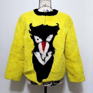 This stunning fur coat is brand new without tag, of modern design/recent production (NOT a vintage one). Brand label and composition tag may be cut/removed per manufacturer requirement. It is made of natural lamb fur sheepskin shearling with a unique cartoon fur patchwork pattern (not printed). Featuring a classic cropped style, it offers a perfect combination of style and functionality.
