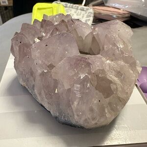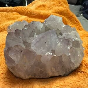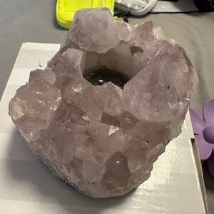 This soft lilac amethyst has some nice amber colored and black inclusions. Would work with any votive or tealight candle or for a safer option, a battery operated LED candle! Genuine amethyst! Never used for a candle, only displayed on a shelf. Purchased at a local gem show for $45, selling for $35