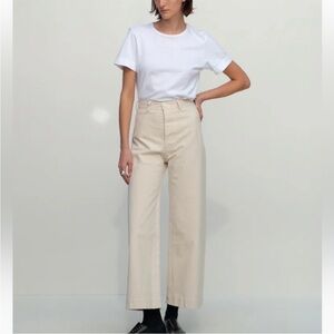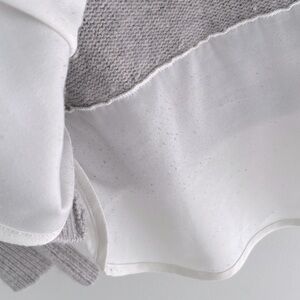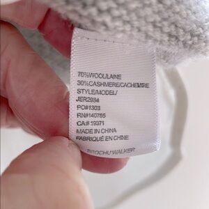 70% Wool/30% Cashmere with a partial recycled underlayer at the bottom hem. No underlayer at the cuffs