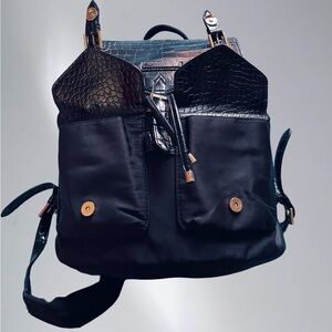 Black backbag/bookbag with gold details.
