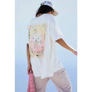 So slouchy, this tee boasts beautiful graphic zodiac art on the back, a smooth, 100% cotton fabrication and relaxed silhouette so you can show off your sign going to and from workouts or on days off - no birth chart necessary.