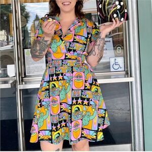 Joie Womens Nanon B Black Lace Dress Fit & Flare Dress, size Small. This beautiful dress is so pretty and versatile! Zip up back with strappy halter look in front and Racerback. Slightly blouson top that gathers at waist and flares out at the skirt. Black lining. Nylon/cotton. Excellent condition, like new.
