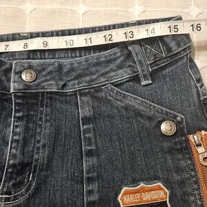 Y2K Vintage Harley Davidson Biker Bootcut Jeans Patch Zippers Womens 10 Long