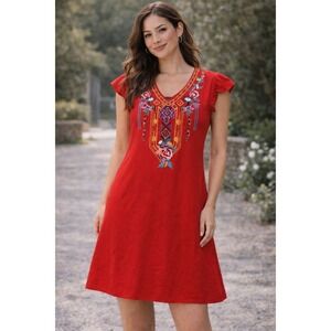 100% cotton v-neck a-line tank top. One tiny spot noted in photo. In otherwise great used condition.