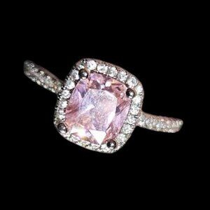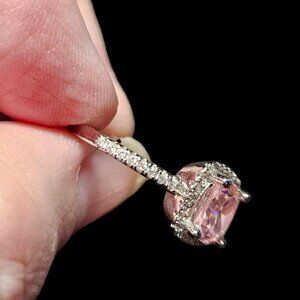 Add a touch of timeless beauty to your collection with this stunning pink cushion-cut ring!