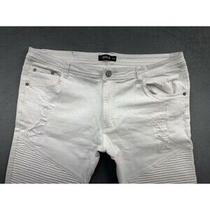 7 Souls +Denim Moto Jeans Mens 42X34 White Factory Destroyed Bikers Summer