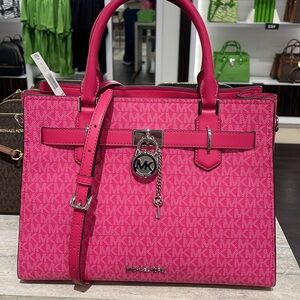 Michael Kors Hamilton Medium Signature Logo Satchel Dragonfruit NWT