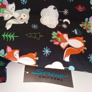 SERENE BLACK V-NECK SHORT SLEEVE TWO POCKET MEDICAL SCRUB TOP SIZE MEDIUM NWT