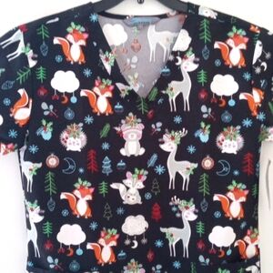 SERENE BLACK MEDICAL SCRUB TOP V-Neck Short Sleeve Two Pocket Medical Scrub Top Dental Office Uniform Medical Work Shirt SIZE MEDIUM NWT