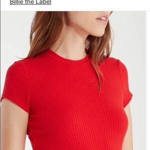 NWT ❤️Billie The Label Beautiful Julia Rib Top Cherry Red L PERFECT4UR VALENTINE Elevate your style with the Red Ribbed Tee. This vibrant top offers a sleek and comfortable fit, perfect for any occasion. Please Refer To All Pictures And Feel Free To Ask Any Questions. - Crewneck