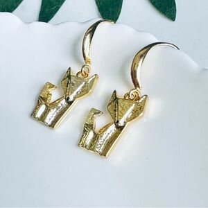2/$30🌵 Golden Origami Fox Earrings Dangle Woodland Animal Delicate Jewelry NEW