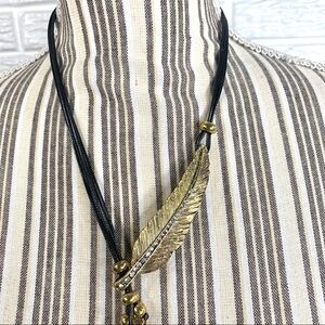 Gold and black feather statement lasso necklace with rhinestone accents. Lead and Nickel Compliant. New with Tags.