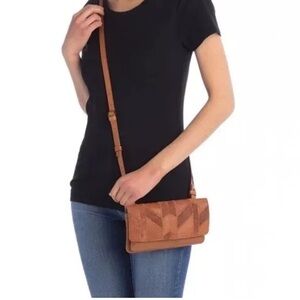 Converts from crossbody bag to wallet Approximate 8.25L x 5.25W x 1.75H strap length 24.5 New without tags.