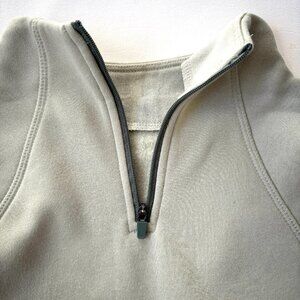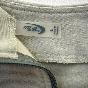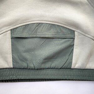 MTA Sport 1/4 Zip cropped long sleeve sweatshirt fleece top. Light green with contrasting darker green zipper, elastic band, and back pocket.