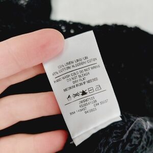 New Joe's Women's Black V-Neck Long Sleeve Knit Crochet Cropped Sweater P3690