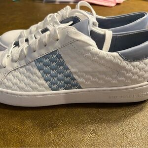 Michael Kors Tennis Shoes, White with Blue Trim, Size 7M