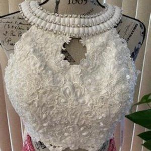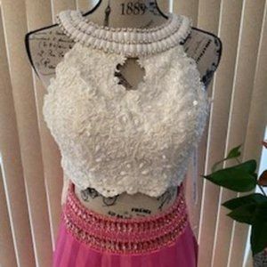 Striking Pink/White Two Piece Embellished Formal Evening Gown Size 2